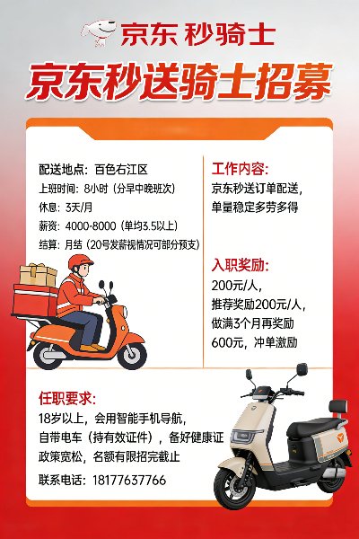 - 百色星源商贸有限公司招募骑士京东秒送骑士